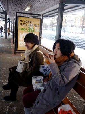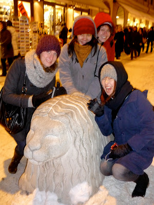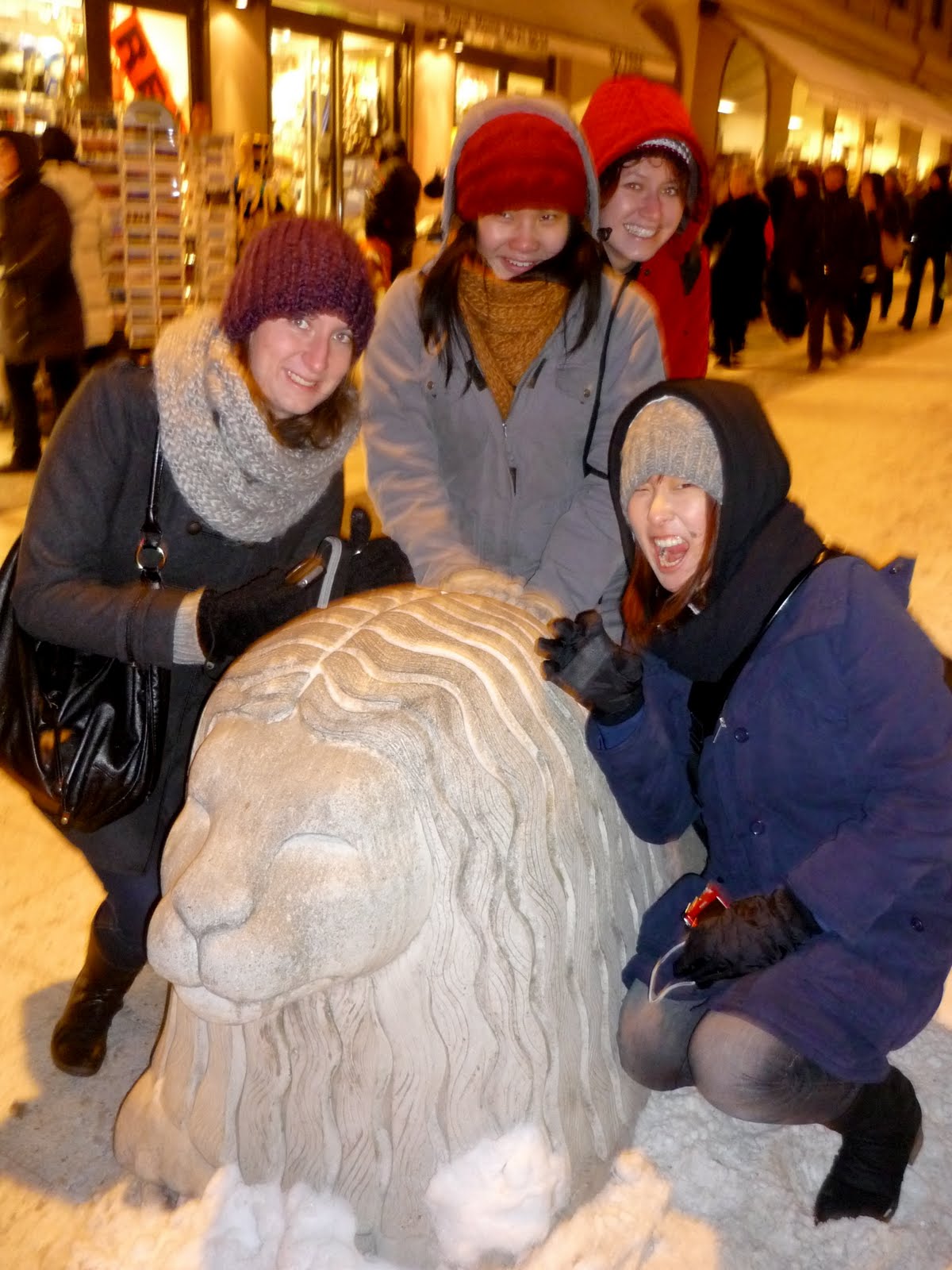 Well, except Jasmien, who quickly found herself on the receiving end of mocking texts. "Here come the servants to fan us and feed us grapes!" "Do you think you could push the train a bit more quickly?" "I hope we don't crash into a lake because I don' think there are enough lifeboats for all of us..." Anyways, upon arriving, we checked into our hostel (this was my first stay at a hostel, and it was definitely less seedy than expected), and trekked out into the city. Stockholm was gorgeous, and a really great city, but it was miserably cold. How cold? This cold: