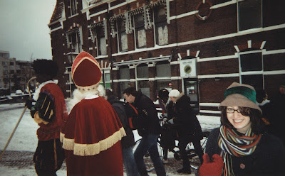 To answer your questions: no, I did not take this picture (thanks, Thomas!) because it was really cold outside and I'm delicate and a Temperature Princess and I didn't want to take my mittens off long enough to fish a camera out of my pocket; yes, I know it looks like I was photoshopped into it; no, that is not the Pope; yes, that Dutch person on the left is indeed in blackface because the Netherlands is terrifying and oh yeah, he's (or she, let's not be exclusive here) totally drinking a Heineken at 1 PM.